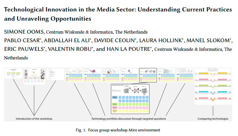 This approach aims to bridge the technological expertise present at the AIMD lab with the practices of the media sector. The computer science technological expertise in the AIMD lab is represented by the work performed at CWI, the National Research Centre for Mathematics and Computer Science in the Netherlands.